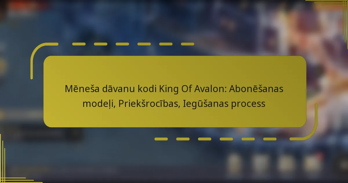 Mēneša dāvanu kodi King Of Avalon: Abonēšanas modeļi, Priekšrocības, Iegūšanas process